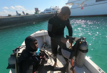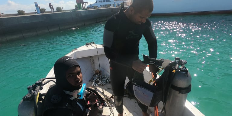 طاقمنا من الغواصين المحترفين قادر على تنفيذ جميع أعمال الإصلاحات تحت الماء، بما في ذلك تصليح الهياكل، وتركيب مراوح الدفع (البروبلر)، والمثبتات (الدفة)، وأنظمة السحب، وغيرها من قطع الغيار دون الحاجة إلى رفع السفينة
