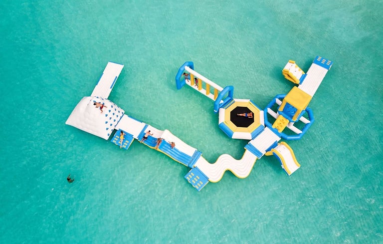 في تصميم وتركيب وتثبيت الألعاب المائية الشاطئية باستخدام أنظمة الرباط المتقدمة التي تضمن الأمان الكامل والثبات طويل الأمد في مختلف الظروف البحرية.